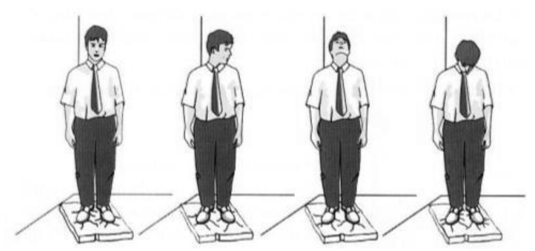 F1. Debout, serrer les pieds progressivement, les yeux fermés