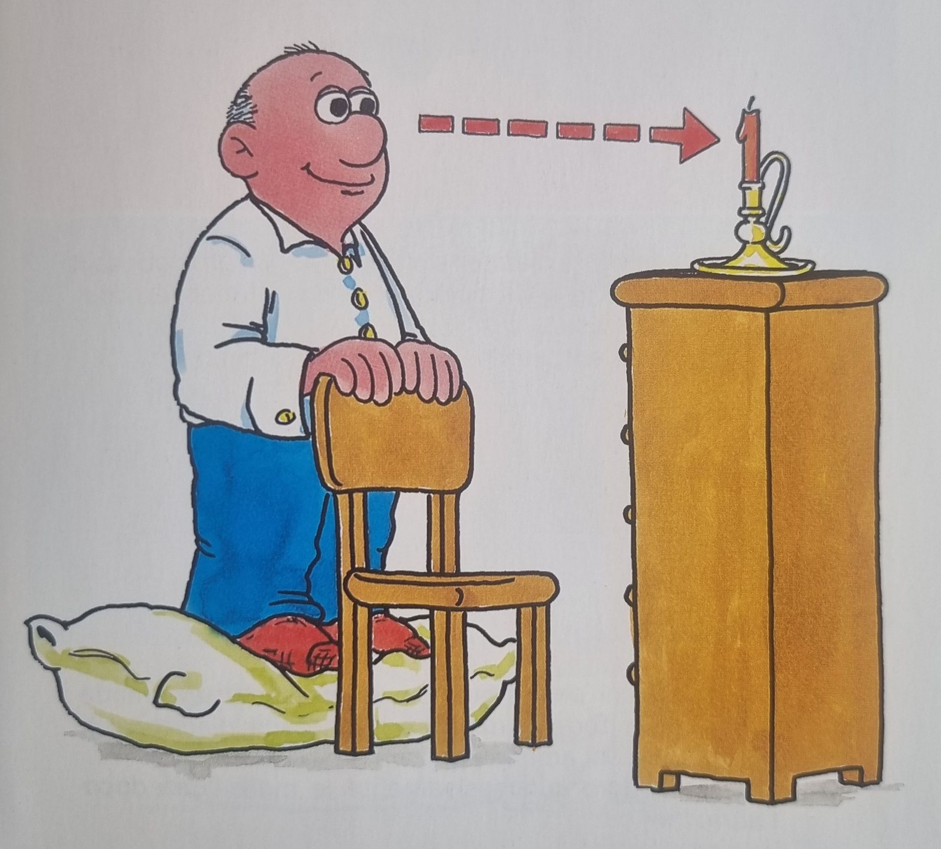 - Baissez et relevez-vous tout en fixant la pointe de l’objet dans vos mains.
