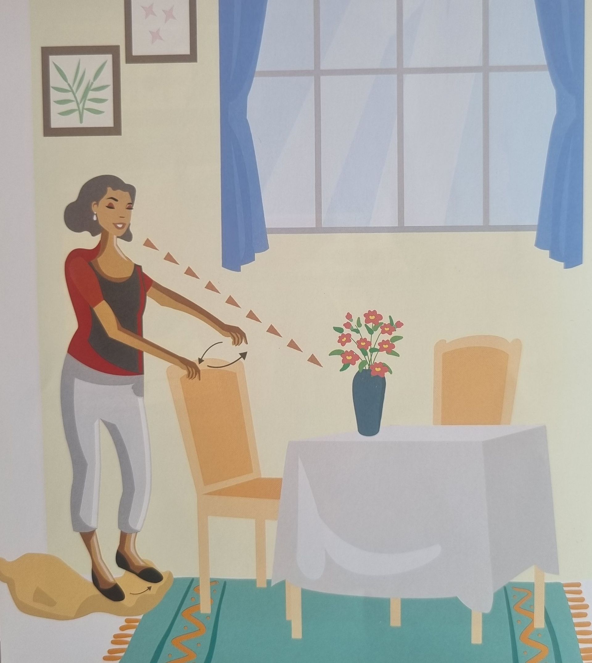 B2. Se tenir à une chaise debout puis fermer les yeux